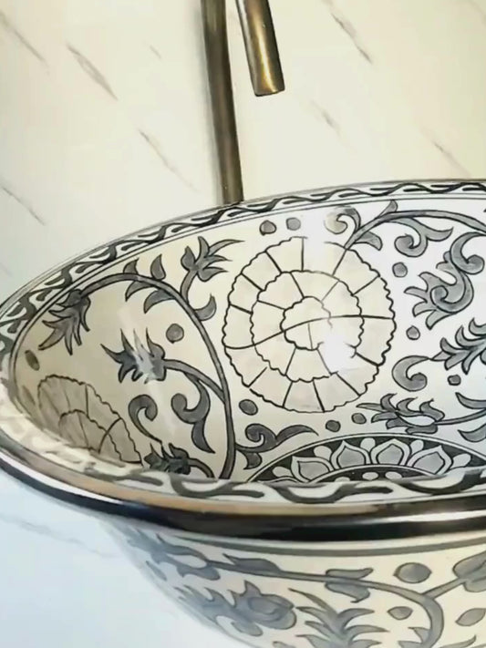 Jerada - lavabo de salle de bain en céramique peint à la main avec bord en argent - élégant, personnalisable et sans plomb - (Etafs)