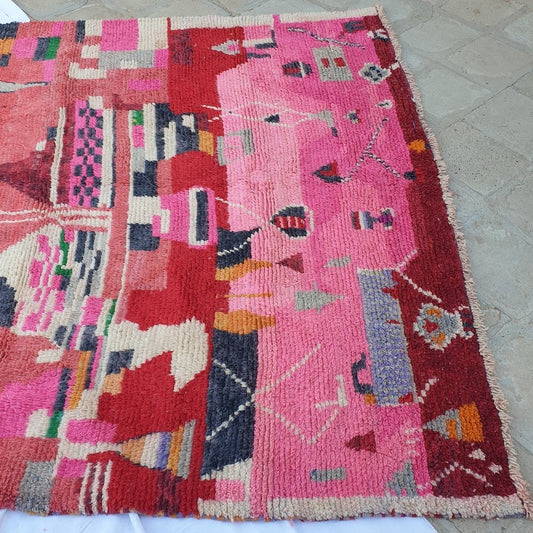 BADOUGH | 8'1x5'6 pi | 2,50x1,70m | Tapis coloré marocain | 100% laine fait main