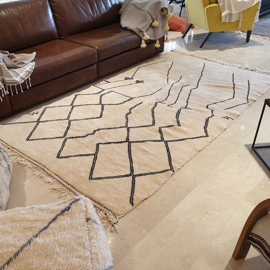 AZIYA | 6'8x10 pieds | 2x3 mètres | Tapis marocain Beni Ourain | 100% laine fait main