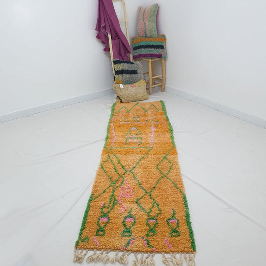 BAKI Coureur | 9'8x2'5 pieds | 3x0,75m | Tapis coloré marocain | 100% laine fait main