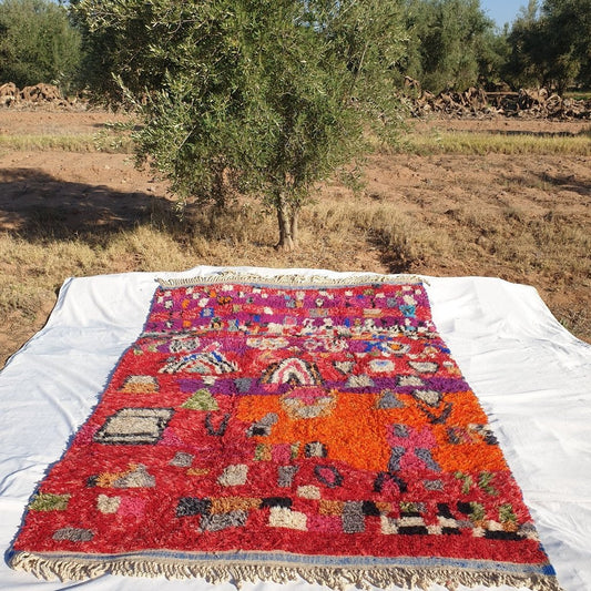 Sadaina - Tapis Marocain Boujad | Tapis de chambre berbère authentique coloré fait à la main | 8'10x5'10 pieds | 2,48x1,55m