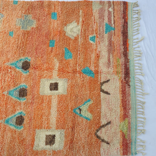 Rkia BENI OUARAIN TAPIS Tapis de salon doux et épais rose orange | Tapis marocain à poils longs en laine berbère authentique | 9'64x6'76 Pi | 2,94x2,06 m