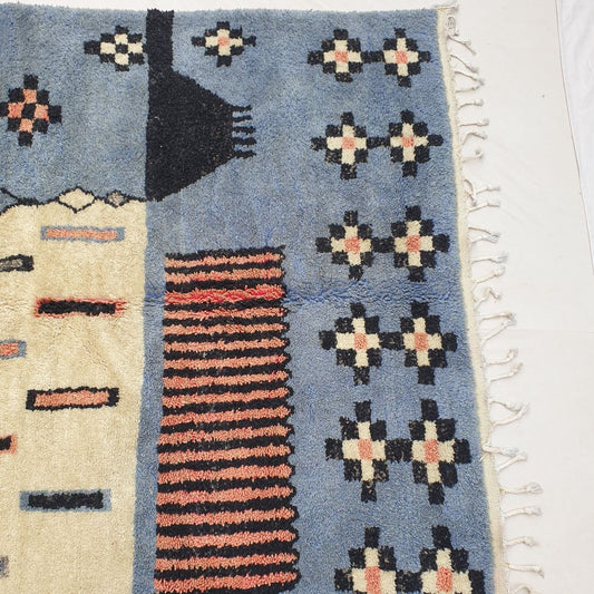 Smawya | Blue 6x9 Tapis marocain Soft Beni Ourain | Tapis de laine à la main berbère | 6'89x9'45 ft | 210x288 cm