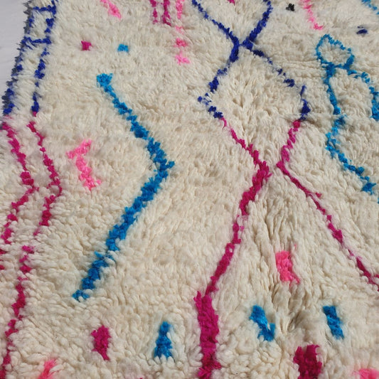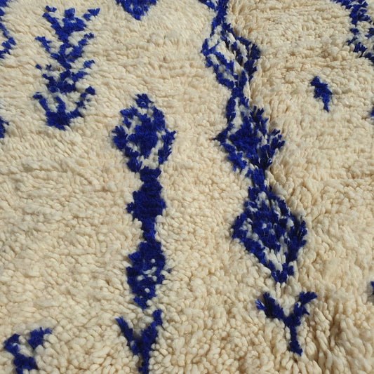 Sindia - Tapis Marocain Blanc & Bleu 3x5 Azilal | Tapis de chambre berbère marocain authentique fait à la main | 3'08x4'75 pi | 94x145cm