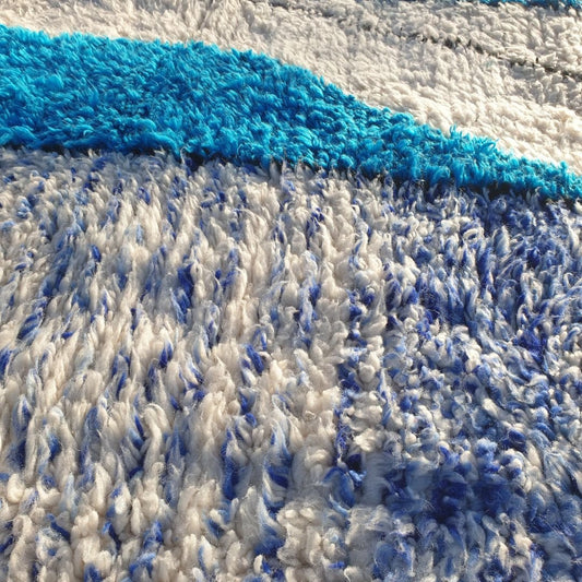 Smala | Beni Ourain 7x10 Tapis Marocain Bleu Ciel Ultra Doux | Tapis en laine berbère fait à la main | 7x10 pieds | 212x305cm