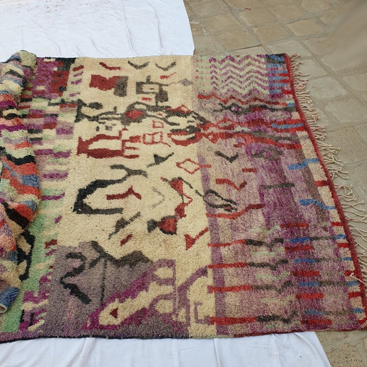 Tamazi - Tapis Marocain Beni Ouarain | Tapis de chambre berbère authentique coloré fait à la main | 8'53x5'35 Pi | 2,60x1,63m