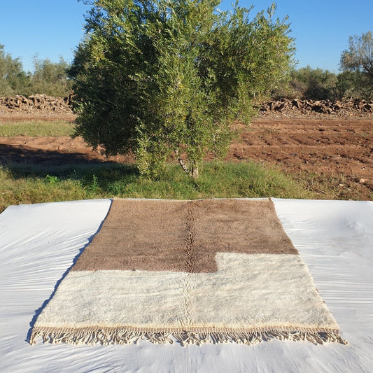 Tawdda BENI OUARAIN TAPIS Tapis de Salon Doux et épais Marron Blanc | Tapis marocain à poils longs en laine berbère authentique | 9'54x6'79 Pi | 2,91x2,07m