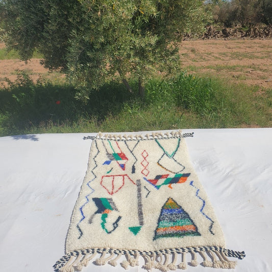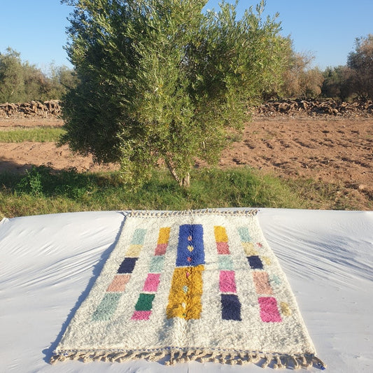 Tapis marocain Azilal blanc | Tapis berbère marocain | Tapis de chambre marocain | Tapis en laine marocain authentique fait à la main | 137x97 cm | 4'5x3'2 pi