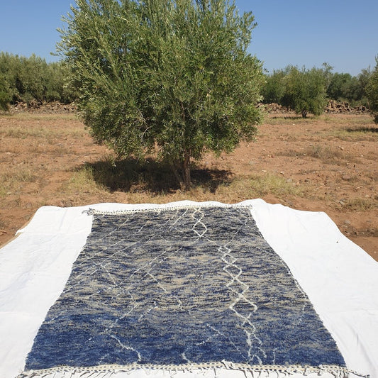 TAPIS BENI OUARAIN Tapis de salon bleu doux et épais | Tapis marocain à poils longs en laine berbère authentique | 9'8x6'6 pieds | 3x2 m | BIHRA