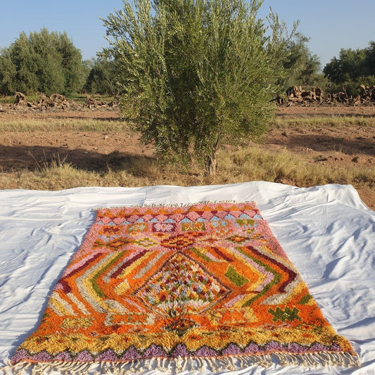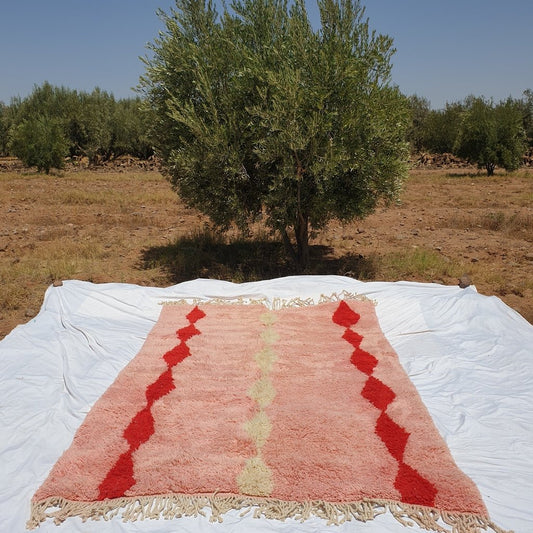 Tapis Marocain Beni Ouarain Orange Rose Authentique et Doux | 9'9 x 6'7 pieds | 3x2 m | JABAL | 100% laine fait main