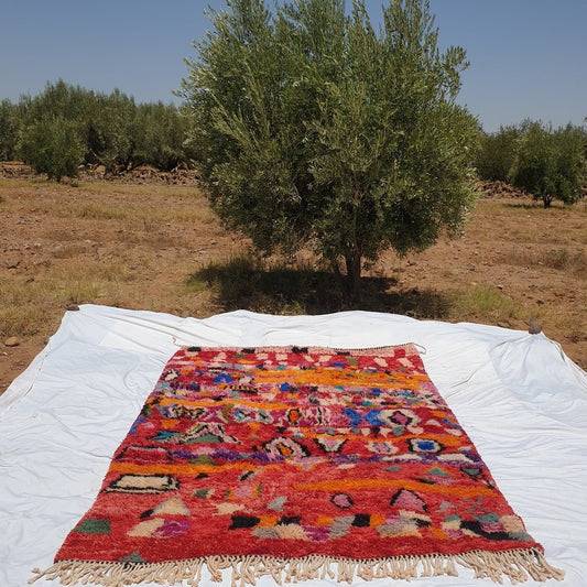 TAPIS BENI OUARAIN Tapis de salon doux et épais rouge orange rose | Tapis marocain à poils longs en laine berbère authentique | 10'3x6'5 pieds | 3,14x2,00 m | Mayssa