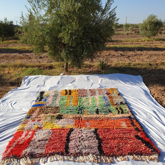 TAPIS BENI OUARAIN Tapis de salon coloré doux et épais | Tapis marocain à poils longs en laine berbère authentique | 9'7x6'6 pieds | 3x2 m | Kanya
