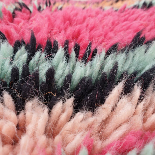 TAPIS BENI OUARAIN Tapis de salon coloré doux et épais | Tapis marocain à poils longs en laine berbère authentique | 8'4x7'1 pi | 2,57x2,16 m | Michiga
