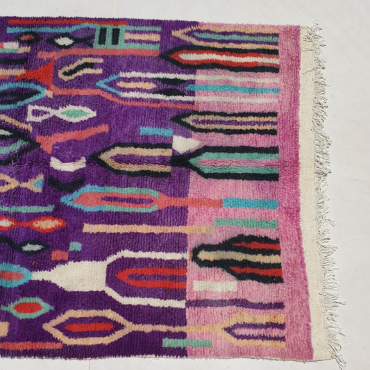 Berbara - Tapis marocain violet 5x8 Berbère Boujad | Tapis berbère authentique de salon et de chambre à coucher | 5'05x8'66 Pi | 154x264cm