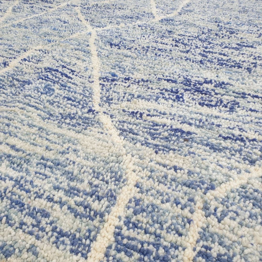 Barha | RAGNE MOROCAN BLUE 7X10 SOFT BENI OURAIN | Tapis berbère fait à la main | 7'x10 'ft | 215x304 cm