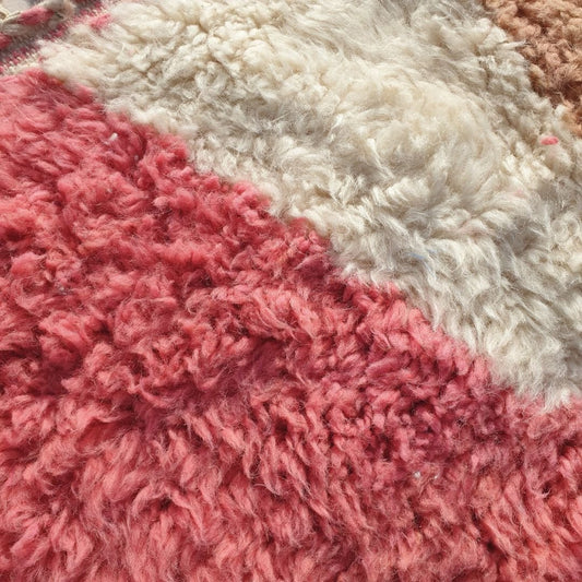 Bibaha | Tapis marocain rose et beige 3x5 Beni Ourain Ultra Soft | 3'51x5'51 ft | 107x168 cm