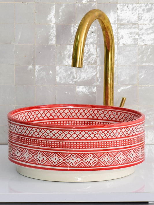 Bristol - Évier de vanité ronde marocaine - bassin de salle de bain en céramique à la main en rouge (Etat)