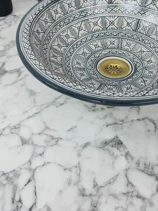 Birjdid - Évier de salle de bain rond artisanal noir - élégant, personnalisable et sans plomb - (ETAFS)