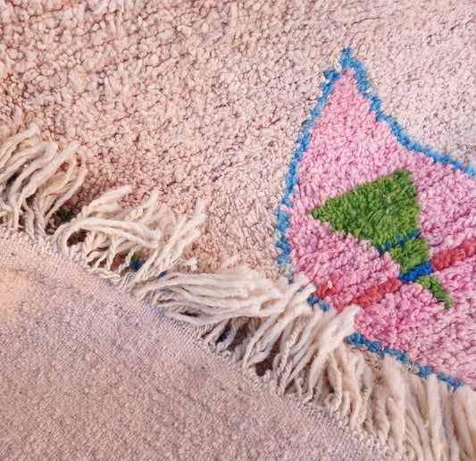 CHICHMA | BENI OUARAIN Tapis Blanc & Rose | 100% laine fait main au Maroc