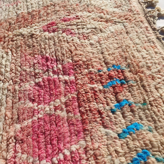 Chalata | Tapis marocain rose et orange authentique doux beni ourain | 4'72x8'10 ft | 144x247 cm