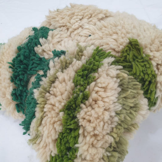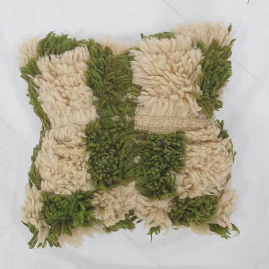 Cream Green Moroccan Cushion Cover – Plush Beni Mrirt Elegance 14x14 inches | 35x35 cm