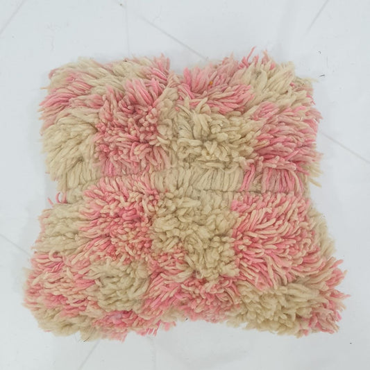 Cream Pink Moroccan Cushion Cover – Luxurious Handwoven Beni Mrirt 15x15 inches | 40x40 cm
