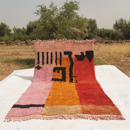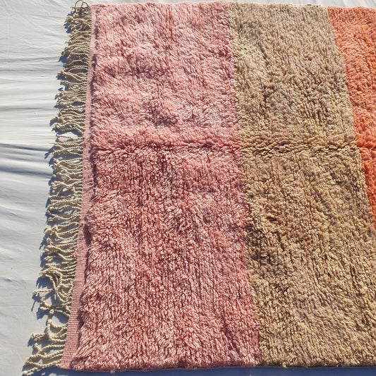 Idouh Personnalisé - Tapis Marocain Rose Orange Beni Ourain | 228x387 cm | Tapis shag coloré marocain | 100% laine fait main