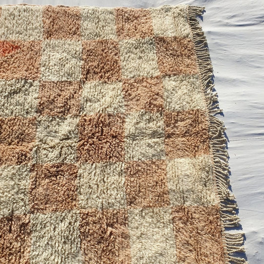 <tc>Dabachi | Tapis Marocain à Carreaux 200x300 Rose Rouille Beni Ourain Ultra Doux | Tapis Beni en laine berbère authentique | 7x9'90 pieds | 212x302cm</tc>