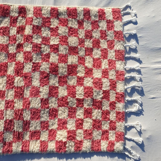 <tc>Daïma | Tapis à carreaux rose 100x150 marocain berbère Beni Ouarain | 3'41x5 pieds | 100x152cm</tc>