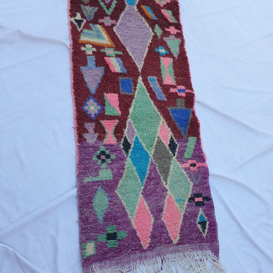 DIRKA Coureur | 9'3x2'6 pieds | 2,84x0,78m | Tapis coloré marocain | 100% laine fait main