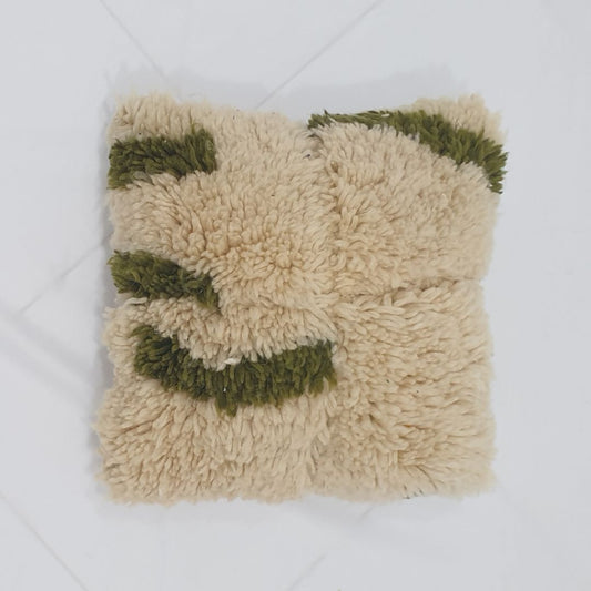 16x16 Cream & Sage Green Wool Cushion Cover - Handwoven Beni Mrirt | 40x40 cm