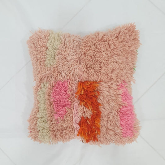 16x16 Shaggy Wool Cushion Cover - Beni Mrirt Pink Abstract | 40x40 cm
