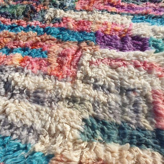 Balbni - tapis marocain de boujad multicolore | Salon berbère authentique et tapis de chambre | 5'18x8'20 ft | 158x250 cm