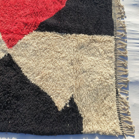 Saïda | Tapis Beni marocain 6x9 Ultra Doux | Noir Blanc Rouge Beni Ouarain | 9x6'56 pieds | 280x200cm