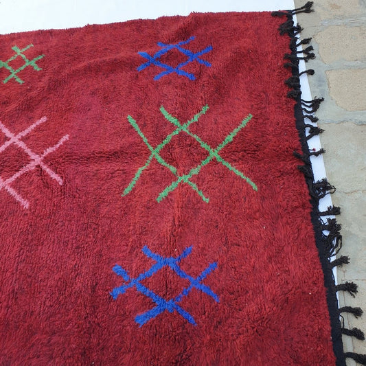 Ghmassa - Tapis Marocain Boujad 6x9 Noir & Rouge Bordeau | Berbère fait à la main | 9'40x6'60 pieds | 286x200cm