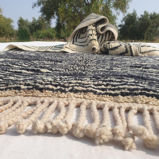 Bchadia | Tapis marocain noir et blanc 6x9 Soft Beni Ourain | Tapis berbère fait à la main | 6'43x9'51 ft | 196x290 cm