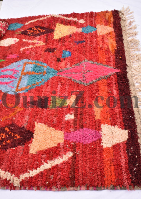 LMIZA - RAGN MOROCAN ROUGE ET VERT 5X8 BOUJAD | Salon berbère authentique et tapis de chambre | 5'x8 'ft | 152x245 cm