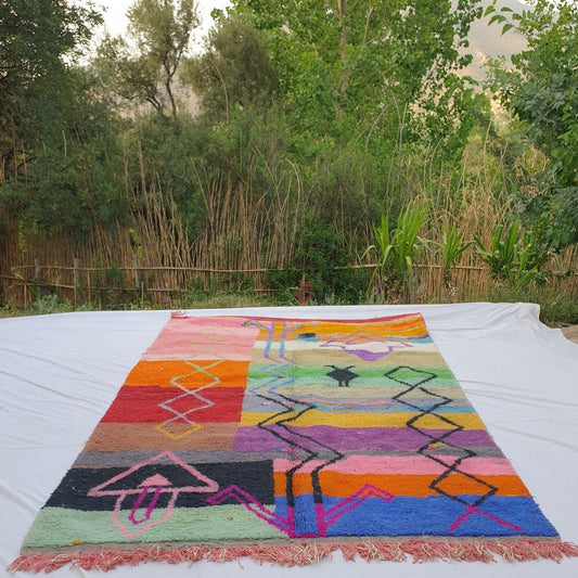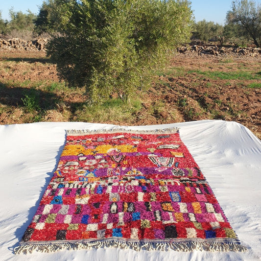 TAPIS MAROCAIN BOUJAAD | Tapis berbère marocain | Tapis coloré Tapis marocain | Tapis de chambre berbère authentiques faits à la main | 8x5 pieds | 2,42x1,54m