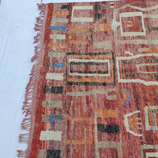 Laysa | Tapis marocain 6x10 BENI OUARAIN Tapis de salon rouge orange doux | Tapis marocain à poils hauts Tapis berbère | 10'07x6'63 Pi | 307x202cm