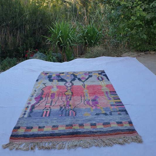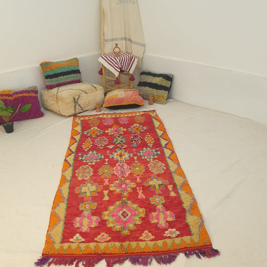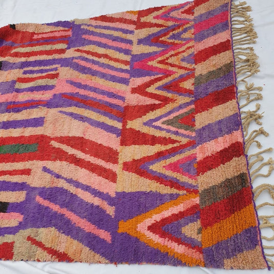 Zadaina - Tapis Marocain Boujad | Tapis de chambre berbère authentique coloré fait à la main | 8x5 pieds | 2,45x1,52m