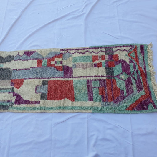 Tapis coureur marocain | Authentique coureur Boujaad | Tapis de laine coloré | Coureur berbère | Coureur de couloir | 6'2 x 2'8 pieds | 188x86cm
