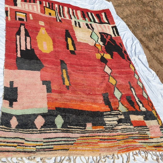 TAPIS MAROCAIN BOUJAAD | Tapis berbère marocain | Tapis coloré Tapis marocain | Tapis de chambre berbère authentiques faits à la main | 10x6'8 pieds | 3x2 m