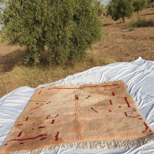 ZHAR Squared (Tapis Beni Ultra Moelleux) | 6'7x6'7 pieds | 2x2 mètres | Tapis marocain Beni Mrirt | 100% laine fait main
