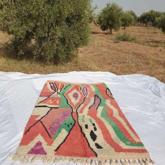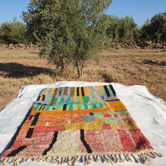 TAPIS MAROCAIN BOUJAAD | Tapis berbère marocain | Tapis coloré Tapis marocain | Tapis de chambre berbère authentiques faits à la main | 8'1x5 pieds | 2,47x1,53m