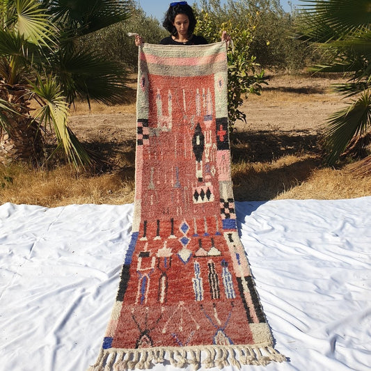 Coureur DLARA | 9'3x2'6 pieds | 2,84x0,80m | Tapis coloré marocain | 100% laine fait main