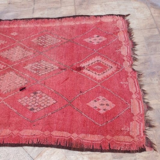 Tapis rouge VINTAGE marocain | 8x4'2 pi | 2,45x1,28m | ZIMANA | 100% laine fait main