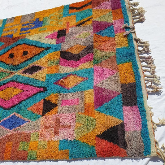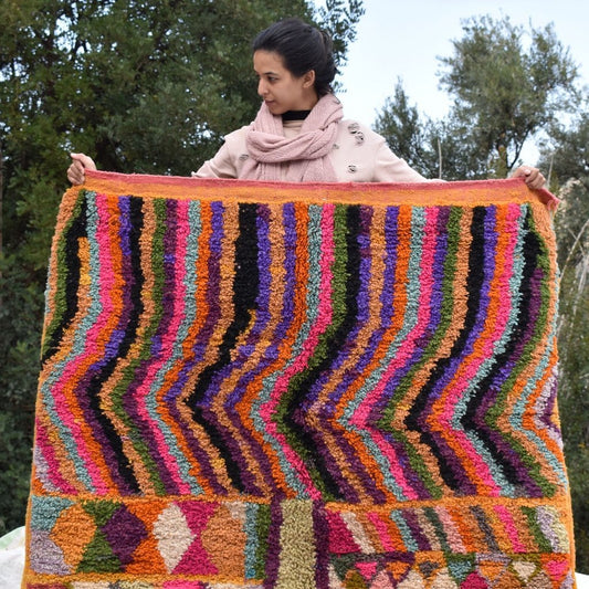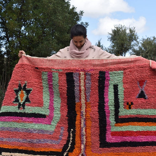 TAFROUD | 8x5 pieds | 247x153 cm | Tapis coloré marocain | 100% laine fait main