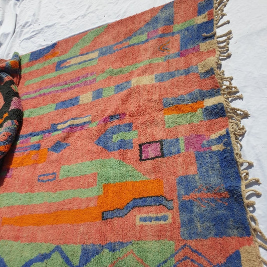 BELBULA | 10x6 pieds | 3x2 m | Tapis coloré marocain | 100% laine fait main