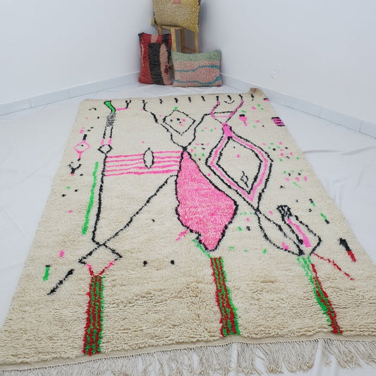 Tapis Azilal blanc marocain | SALWI | 10'2x6 pieds | 3,10x1,82 m |100% laine fait main