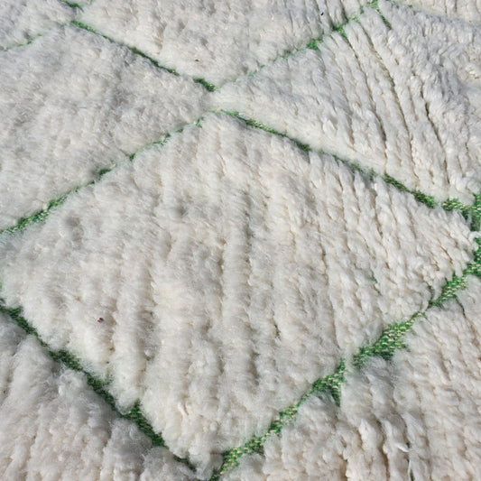 Norma | Rayures blanches et vertes tapis marocain 3x5 beni ourain ultra soft | 3'41x5'05 ft | 104x154 cm